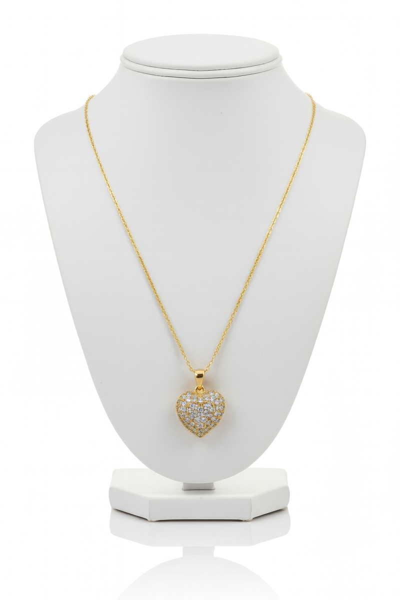Elegant and timeless, this gold heart pendant necklace features a delicate chain and a sparkling heart charm adorned with shimmering stones. Perfect for everyday wear or special moments, it adds a soft touch of romance and refined elegance to any look. 💖